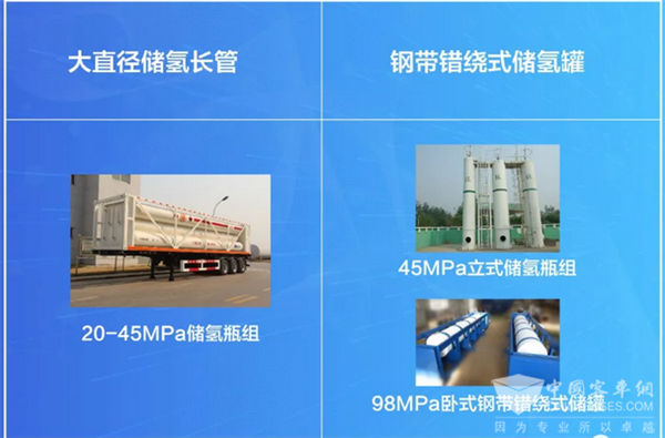 主要应用在固定场所,如制氢厂、加氢站以及其他需要储存高压氢气的地方。目前主要使用大直径储氢长管和钢带错绕式储氢罐。