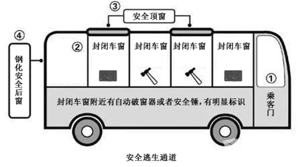 世界汽车工业协会认为:车辆出现着火迹象后的30秒是逃生的“黄金时间”。坐公交车出行,是我们广大民众最普遍的出行方式之一,每位乘客都希望的是平安出行。如果我们能在遇到险情的第一时间瞬间打开逃生通道(开启安全门或击碎钢化玻璃窗),那么就能大大减少人员伤亡和财产损失。