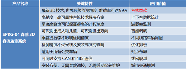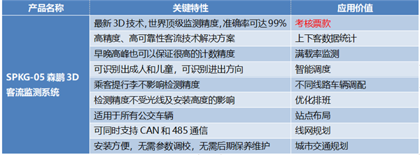 通过对以上几种客流信息采集技术优缺点的分析,结合我国公交客流信息采集的复杂性,森鹏创新性地开发了全系列公交客流监测系统,该系统应用了车辆载重检测技术、主动红外技术、双目视频技术、3D技术等,针对不同车型,不同成本、不同的精度要求,都有相应的解决方案。