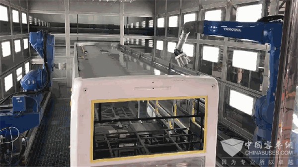 这个是去年4月就已经投入使用的智能化设备,它们负责给一辆辆新能源客车穿上靓丽新装,为城市增光添彩。