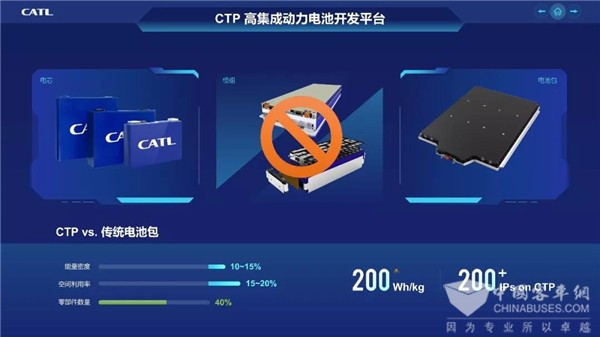 此次宁德时代推出了全新的CTP高集成动力电池开发平台,即电芯直接集成到电池包。由于省去了电池模组组装环节,较传统电池包,CTP电池包体积利用率提高了15%-20%,电池包零部件数量减少40%,生产效率提升了50%,将大幅降低动力电池的制造成本。