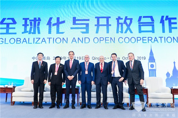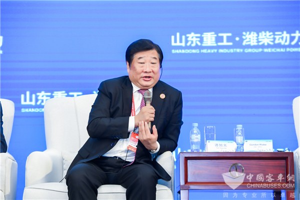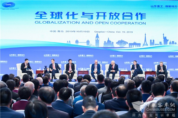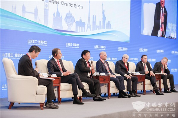 2019年10月19日下午,以“全球化与开放合作”为题的山东重工·潍柴动力分论坛同期举行。会议由新开发银行首席经济学家李稻葵主持,博世集团董事会主席沃尔克马尔·邓纳尔、凯傲集团CEO 高登·李斯克、罗兰贝格CEO 施特凡·沙布、奥地利AVL公司CEO 赫尔穆特·李斯特、SAP公司高级副总裁尼尔斯· 海兹伯格就经济全球化、国际合作、新科技革命等主题展开了深度的探讨。在谈及商用车及未来技术路线发展相关的话题上,谭旭光表现出了自己一贯的睿智与对潍柴动力十足的信心。