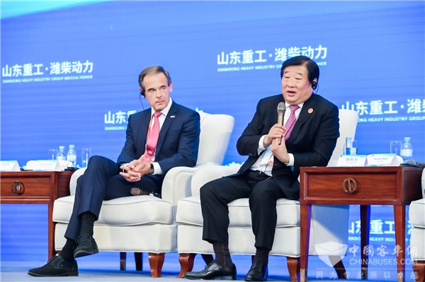与此同时,谭旭光与博世集团董事会主席沃尔克马尔·邓纳尔等人还就柴行业热议的“内燃机将被电动机取代”以及商用车未来技术路线等话题进行了深入探讨。“柴油机不可能一夜之间都变成新能源,但大家要做好技术储备。”谭旭光表示:“我曾经用三年时间走遍了全世界,就是为了深入了解新能源在重型商用车领域应用的可能性。”