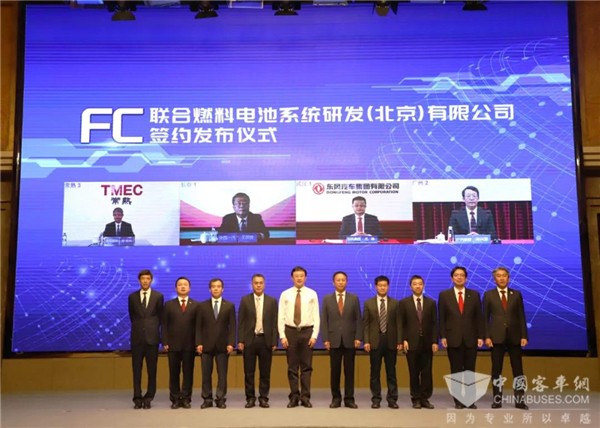 2020年6月5日,为推动中国氢燃料电池汽车普及应用,中国一汽、东风汽车、广汽集团、北汽集团、丰田汽车、亿华通等六家公司签署合营合同,成立联合燃料电池系统研发(北京)有限公司,公司定位为开放式氢燃料电池系统研发平台,预计年内在京成立。