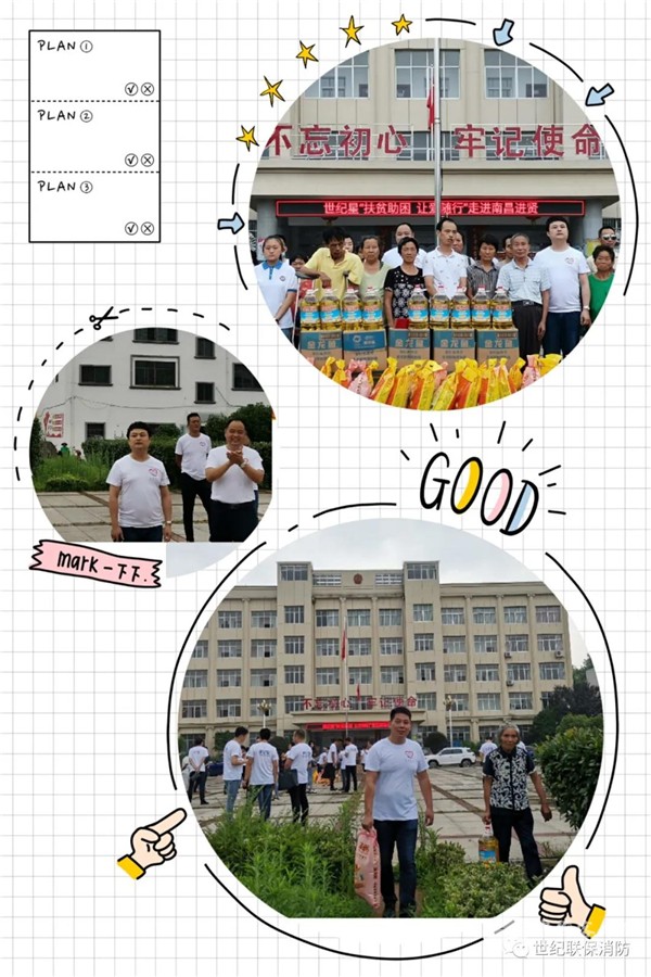 为践行社会责任,帮助农村贫困群众,以实际行动庆祝党九十九岁生日。2020年6月30日,冒着霏霏细雨,北京世纪联保消防新技术股份有限公司董事长梅盛先生带领爱心小分队来到南昌进贤县下埠乡开展慰问活动。