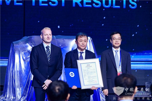 发布会上,权威内燃机检测认证机构中国汽车技术研究中心有限公司和德国TÜV南德意志集团同时将热效率达到50.26%的认证证书颁发给潍柴。德国TÜV大中华区交通服务部总监Dirk Hinzpeter说:“我们将热效率突破50%的检测报告颁发给潍柴,这是我们颁发的全球内燃机行业热效率最高的一份报告。”