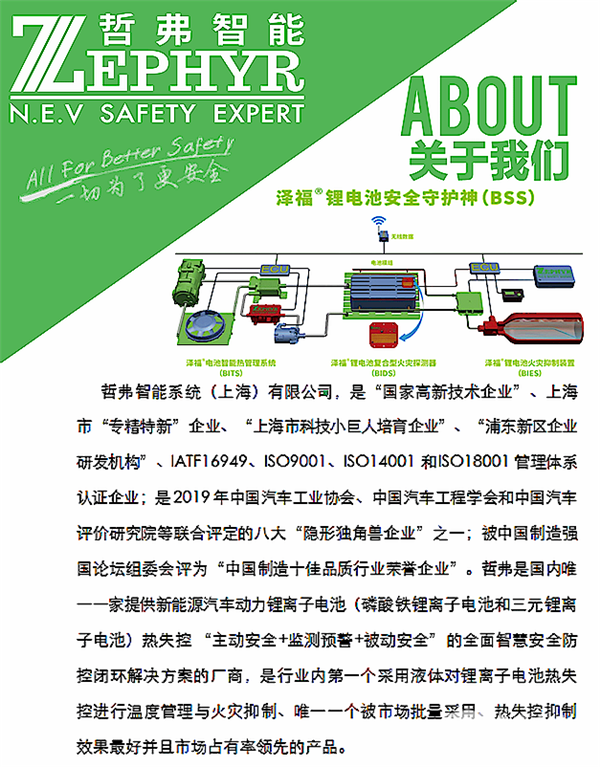 展望即将到来的2021年,哲弗将不忘初心,继续为新能源汽车安全事业做贡献!哲弗秉承“泽四海,福天下”的泽福®品牌精神,以新能源汽车安全为使命,致力于做精做强新能源汽车和储能设施的锂离子电池的主动安全、监测预警和火灾防控技术,立志成为新能源汽车动力电池安全防控领域国际品牌!