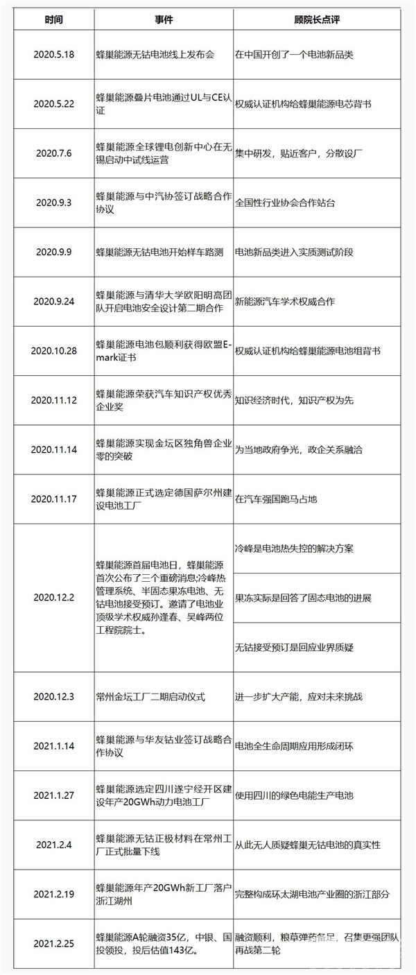 蜂巢能源半年多以来的较大事件与点评