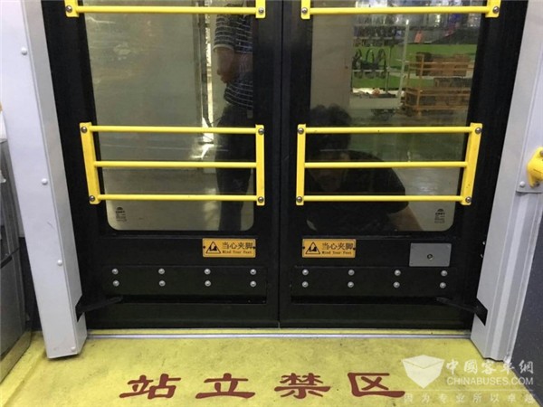 “塞拉门能够更好地解决乘客迅速逃生撤离的问题,如遇突发情况门口挤满了人,内摆车门会发生打不开的情况,而塞拉门是向侧面打开,便于逃生,只要按下开门按钮或应急阀打开,门就能顺利打开,减少紧急情况下的逃生时间可以说是公交车门技术的一次升级。” 唐明尧介绍。