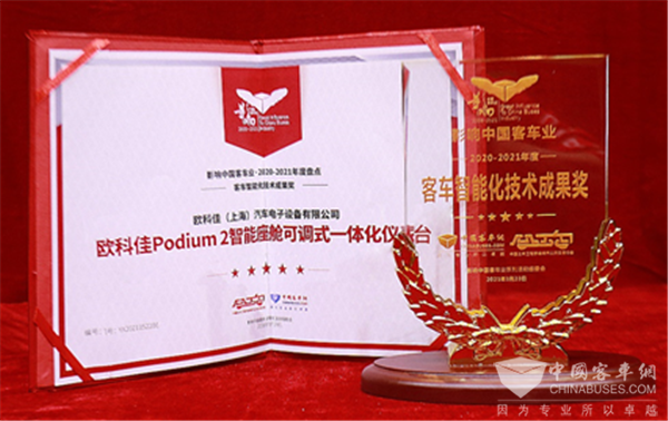 PODIUM 2智能座舱可调式一体化仪表台荣获2020-2021年度“客车智能化技术成果奖”