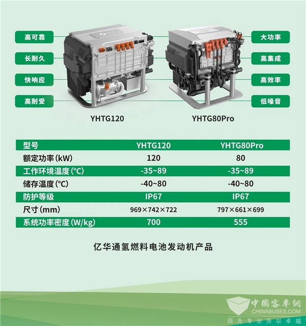 系列产品采用具有完全自主知识产权的国产电堆,零部件国产化率高达100%。其中,G120质量功率密度突破700W/kg,实现-30℃低温启动、-40℃低温储存。可广泛适用于城际客车、重卡、环卫车、渣土车等车型,具有高可靠、长耐久、大功率、低噪音、快响应、高集成、高效率、高耐受等诸多优点。