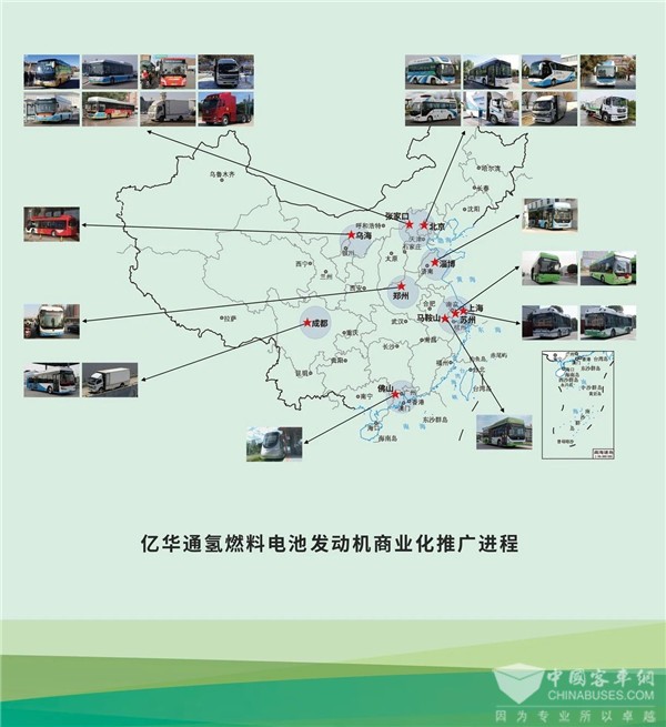 目前,亿华通分别与宇通、福田、吉利等近30家主流车企联合推出客车、物流车、乘用车等全系列产品,北京、上海、张家口等地开展批量商业化,配套车型超过1300辆,累计运行里程超过3500万公里。