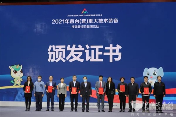 2021年10月22日,由北京市首台(套)重大技术装备统筹联席会办公室、北京市发展改革委牵头组织的“2021年首台(套)重大技术装备授牌暨项目路演活动”在中关村国家自主创新示范区展示中心成功举办。活动对实现重大技术突破的企业及产品集中授牌,旨在激励企业集聚创新资源优势、实现高质量创新创造。亿华通入选北京市首批首台(套)重大技术装备企业,自主燃料电池发动机被纳入《北京市首台(套)重大技术装备目录(2021年)》。