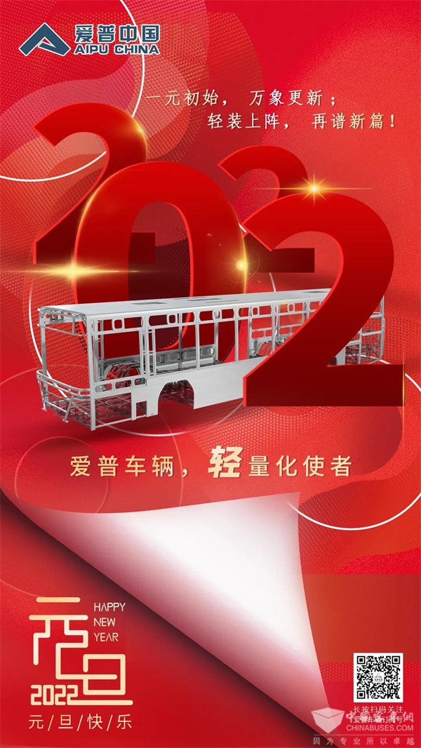 “一元复始山河美,万象更新锦绣春”,展望美好的2022年,爱普将继续秉持创新驱动、品质为本、坚守初心的价值观,积极履行社会责任,践行实业兴国,助力中国客车产业的轻量化、智能化高水平发展。
