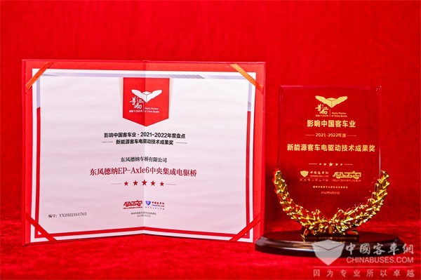 东风德纳EP-Axle6电驱桥荣获“新能源客车电驱动技术成果奖”