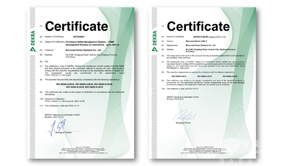 微宏动力产品功能安全的开发和管理能力上达到国际领先水平