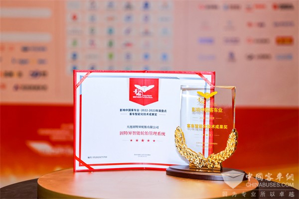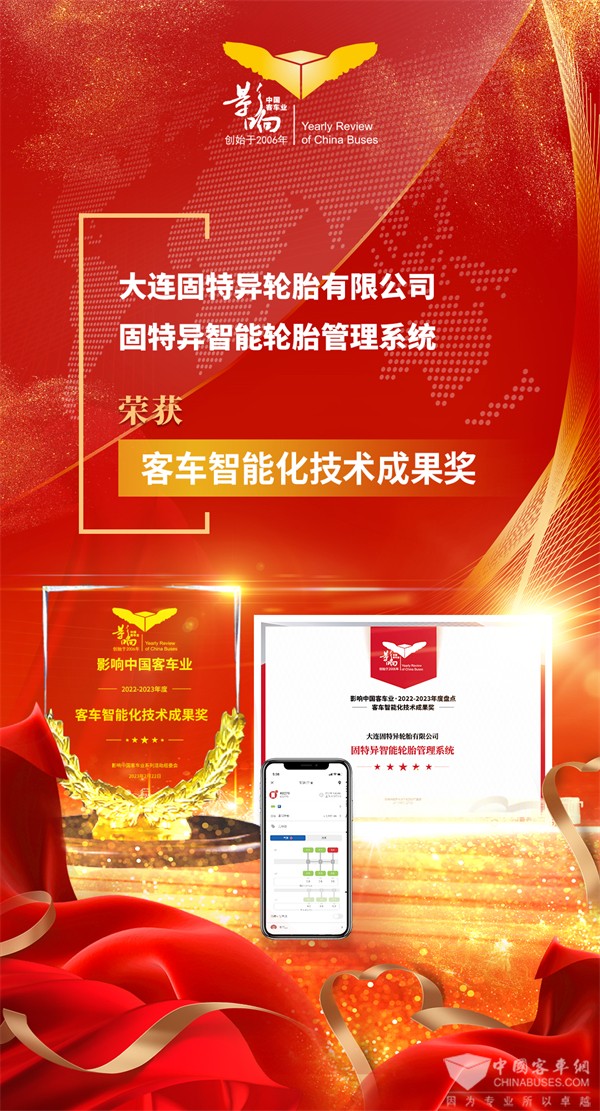 活动同期,“第17届影响客车业年度盘点活动”评选结果正式揭晓,经过专业读者投票和影响客车业组委会综合评定,固特异智能轮胎管理系统(Goodyear Mobility Cloud)荣获第影响中国客车业·2022-2023年度“客车智能化技术成果奖”,再次展现了固特异轮胎强大的创新实力与客车智能化技术水平。