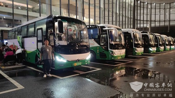 一键启动,鱼贯而出。半小时的时间,大兴机场接驳区整齐的停满了一排红绿相间的绿色零碳氢能大巴。20:16分,满载乘客的首辆国家电投氢能大巴驶出机场停车坪,沿大兴机场高速,一头闯入雨幕,驶向万家灯火!