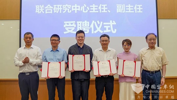 中国科学院院士马余刚(左一)、褚君浩(右一)为联合研究中心负责人颁发聘书