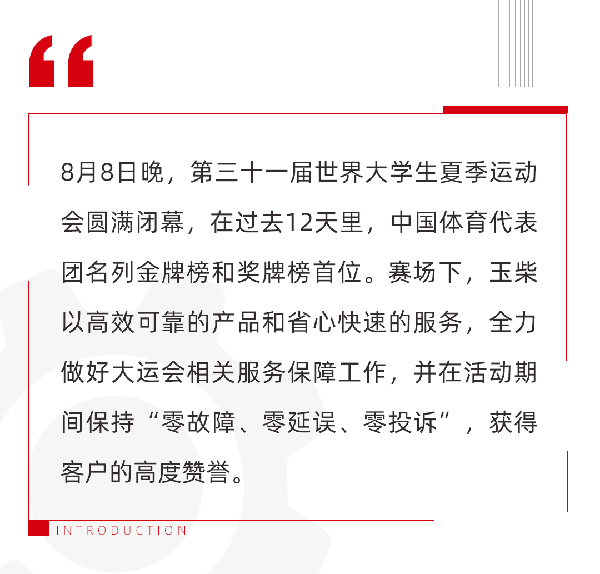 随着大运会的圆满闭幕,在玉柴服务代表团全员努力下,收获了“零故障、零延误、零投诉”的“王牌”答卷。