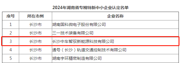 湖南公布专精特新中小企业名单 中车电动旗下这家企业上榜