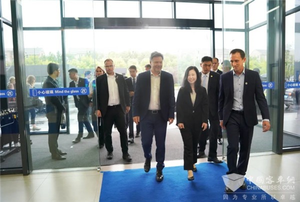 2024年6月23日,正在中国进行工作访问的德国联邦副总理兼经济和气候保护部部长罗伯特·哈贝克(Robert Habeck)率团参观了采埃孚集团位于杭州的电驱动工厂——采埃孚电驱动技术(杭州)有限公司。