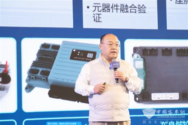 本次会议,森鹏电子销售总监袁丁受邀参加公交新能源技能推广应用趋势论坛,并发表了“商用车EEA电子电气架构演进方向”的主题演讲,演讲中,袁丁对车端、云端以及应用端演进方向做了详细介绍。