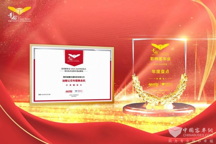 2025年1月8日,“第十九届影响客车业年度盘点,新质生产力创新发展论坛暨公交客车科技交流”活动在河南郑州盛大举行。活动期间,郑州迪耀公交车载售卖机斩获“客车技术创新应用成果奖”,成为行业焦点。