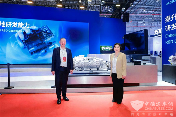 采埃孚集团董事会成员、商用车解决方案事业部负责人彼得·莱尔教授、博士(左)与采埃孚商用车解决方案事业部亚太区总裁于素杰女士(右)
