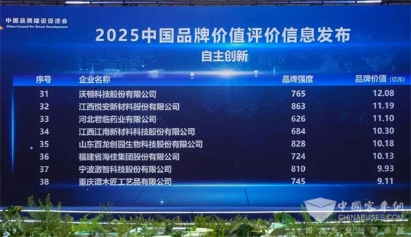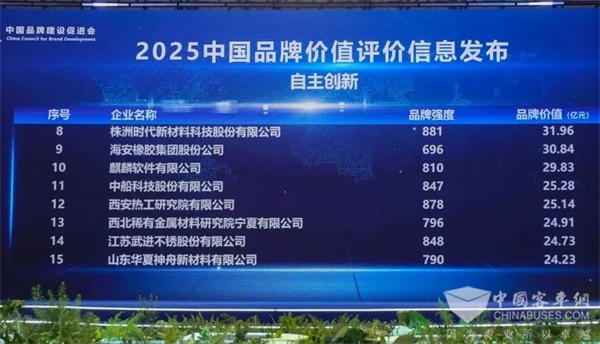中国中车旗下独立上市企业——时代新材、沃顿科技也同时上榜,以31.96亿元和12.08亿元的品牌价值,入选中国自主创新领域品牌价值排行榜第8和第31位,形成了中车母子品牌同频共振的良好发展局面。
