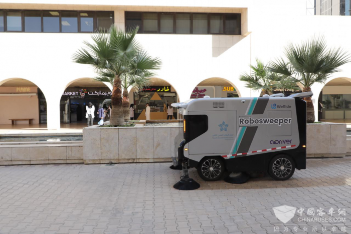 文远知行无人扫路机S1在法赫德国王医疗城