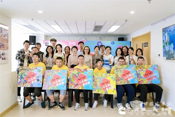 2025年6月11日,在北京金羽翼残障儿童艺术康复服务中心的教室里,康明斯中国的志愿者们正与几位心智障碍青少年共同完成一幅名为《心无碍 更有爱》的集体创作。画布中央,一颗“康明斯红”的星星、花朵造型的齿轮及孩子们手绘的绿叶……这幅画作的原稿是来自金羽翼孤独症学员王安琪的《美梦》,经由志愿者和学员们再创作,这些深浅不一的印记最终交融成闪耀的画作。