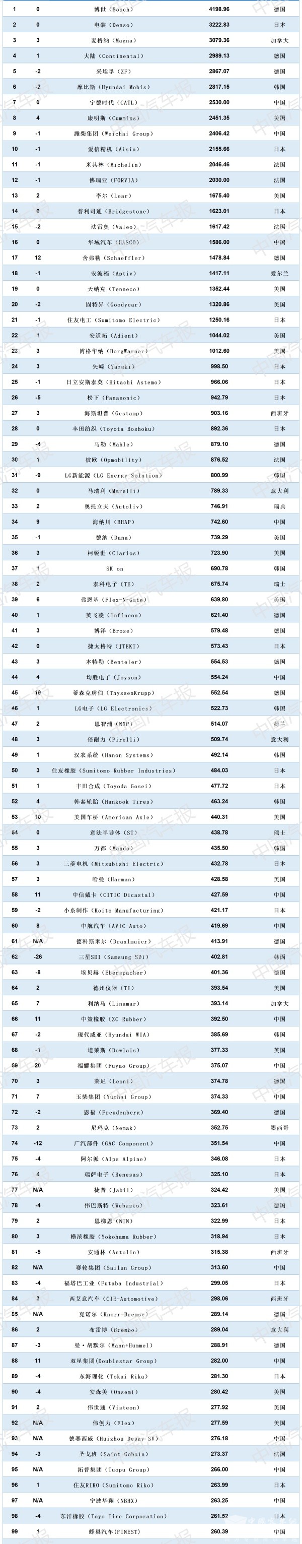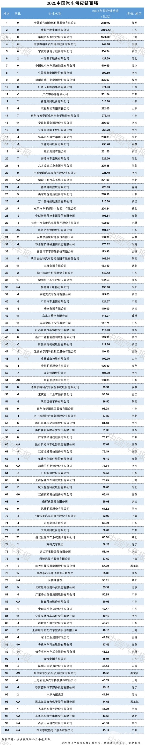 全球汽车供应链百强、中国汽车供应链百强: