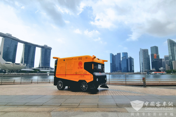 (文远无人扫路机S1在新加坡滨海湾公开道路上作业)