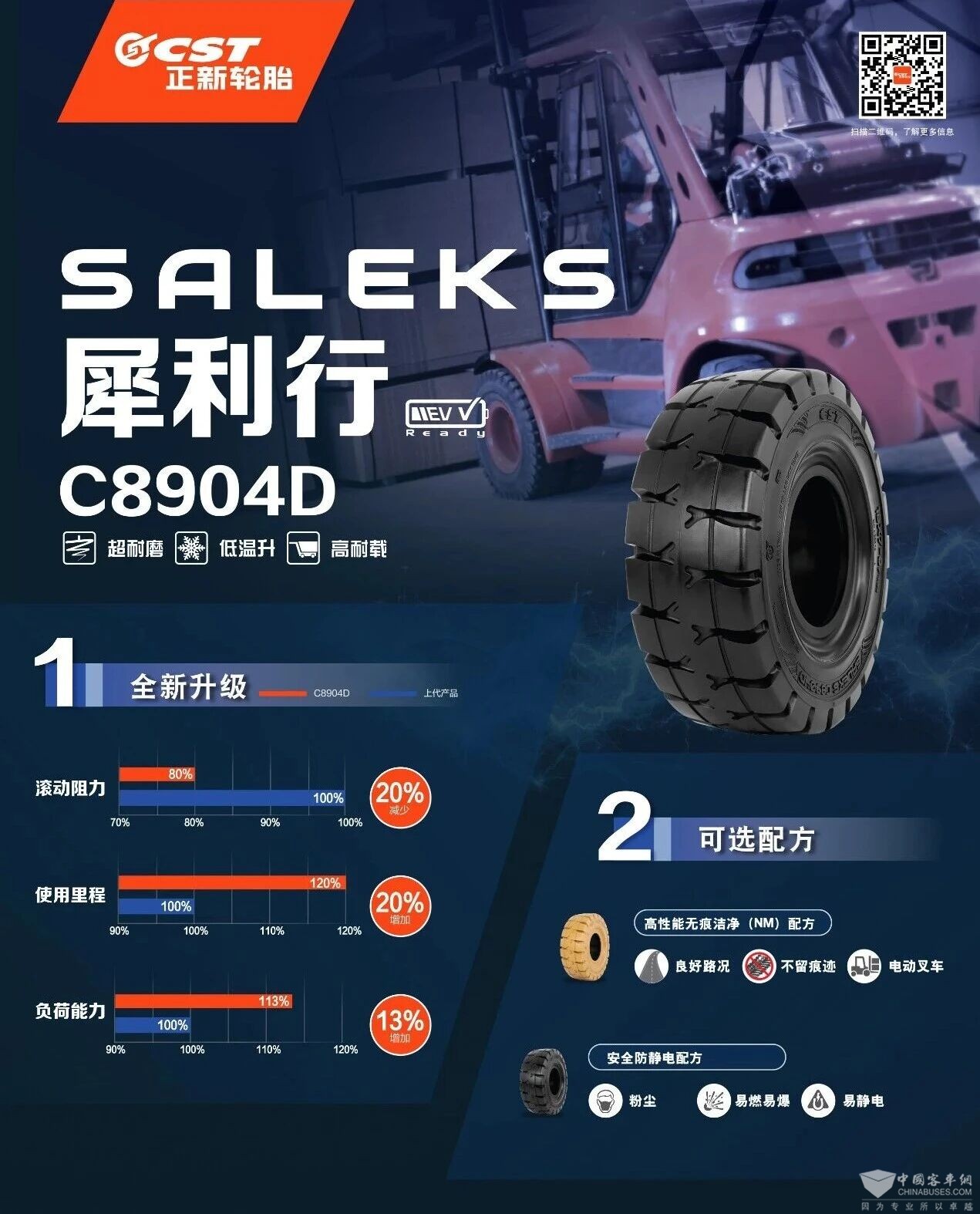 · 导入低温升配方,满足高频率作业需求;· 宽厚胎面搭配鹿角花纹设计,耐磨性能优异;· 大尺寸胎体结构设计,承载性能佳。