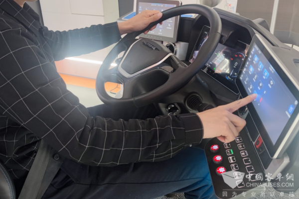 该产品是技术创新与人文关怀的高度融合之作,采用一体化随动结构设计,仪表台可实现上下前后四向调节,所有需要司机操作的功能区开关均固定在相同位置,操作控制在单臂可及的范围内,无需驾驶员离开座椅靠背,既能呵护司机健康,又能提升操作便捷性。