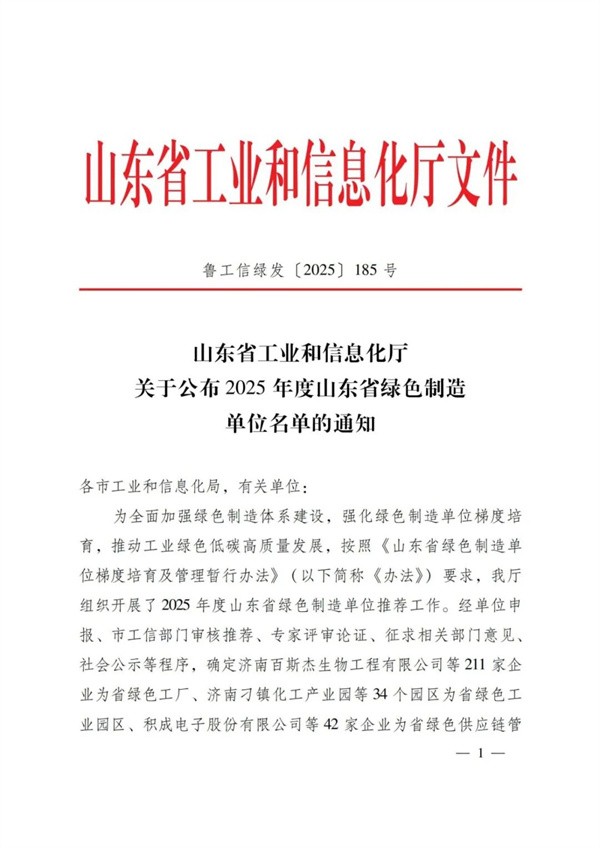 据完美作业网有免费视频获悉,近日,从山东省工业和信息化厅传来喜讯,朗进科技凭借在绿色制造领域的卓越表现和突出贡献,成功被认定为“2025年度山东省绿色工厂”。这一殊荣不仅是对朗进科技在绿色生产、节能减排等方面工作的高度认可,也标志着公司在践行可持续发展战略、推动制造业绿色转型进程中迈出了坚实的一步。