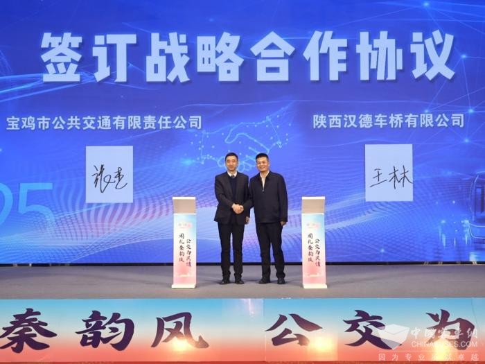 启动仪式上,宝鸡公交与汉德车桥签署了战略合作协议,共同推动公交技术研发与市场应用,助力城市公共交通系统升级及高质量发展。