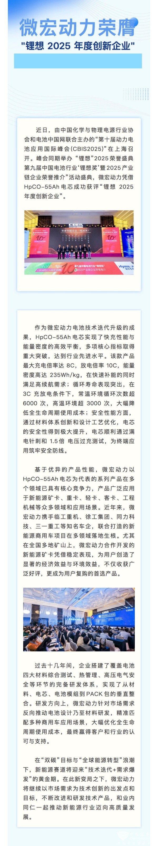用技术打造品牌效应!微宏动力荣膺 “锂想 2025 年度创新企业”