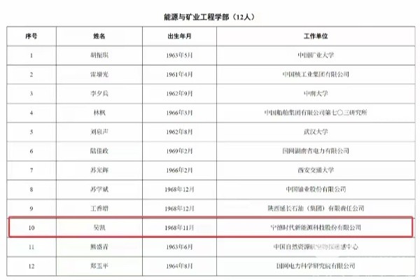 - 恭喜!宁德时代首席科学家吴凯当选中国工程院院士[11-21]