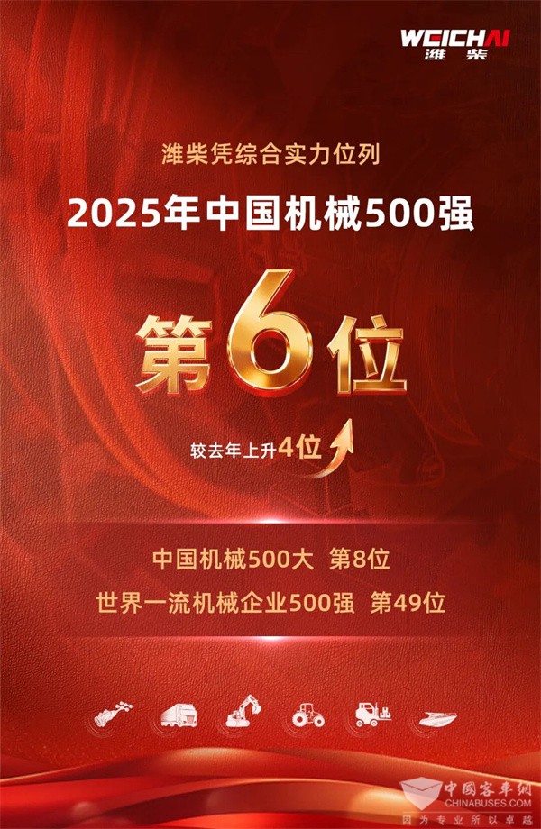 喜报!潍柴位列2025中国机械500强第6位