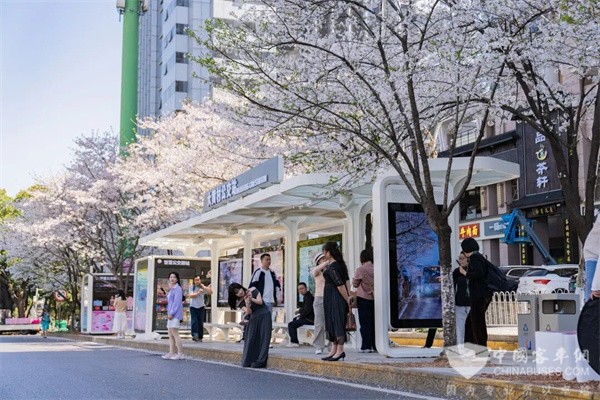 演讲中,李董以“武汉最美樱花站台”为例,展示了智慧候车亭从“公交设施”升级为“城市传播媒介、文化符号、打卡地标、数字服务终端”。该候车亭一经问世,便在网络传播中形成高话题度,带动区域文化表达与城市品牌传播,成为智慧交通与城市IP叠加应用的典型案例。
