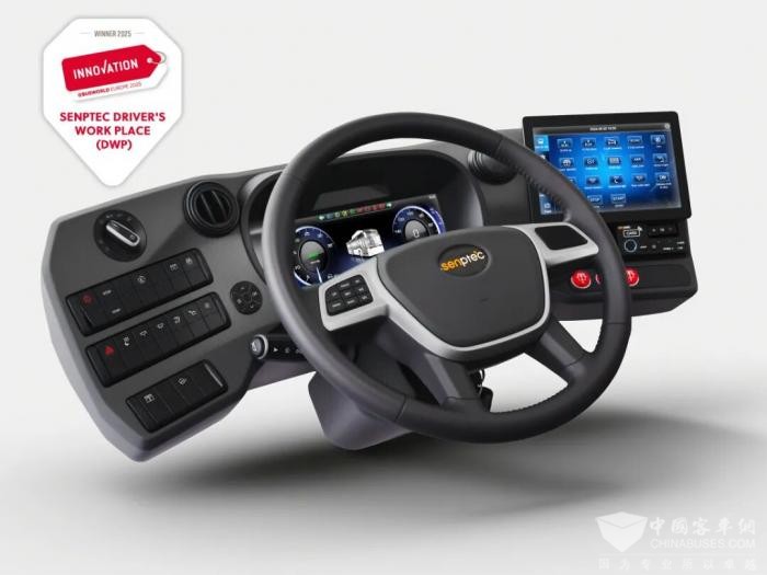 在既有成果的基础上,森鹏持续深耕,自主研发推出了全球首款量产电动调节数字驾驶舱,并成功斩获2025比利时BusWorld创新奖。