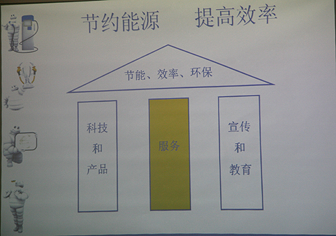 与此同时,能源的节省也可以有效的控制二氧化碳及其它温室气体给全球环境带来的影响。    米其林,作为道路运输业的主要参与者,一百多年来始终致力于环保节能轮胎的研究和制造,通过改变配方和其他技术方面的创新,来降低轮胎在车辆运行当中能量的消耗,同时降低对环境的影响。    轮胎作为承载汽车重量,直接与地面接触的汽车零部件,在汽车正常速度行驶时所造成的油耗占整个汽车油耗的20%。作为一个轮胎厂商,一直以来,米其林把如何提供和帮助用户选择能减少油耗的轮胎,从而降低使用成本,作为孜孜以求的目标。米其林公司利用自己在轮胎科技方面的领先地位和研发投入,在保持产品安全性的前提下,通过减少滚动阻力、延长轮胎使用寿命等方法来改进轮胎性能。    2006年在中国上市的蕴含ENERGY节能技术的绿色环保型省油轮胎XZA
