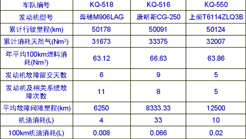 *参加对比试验的三种压缩天然气发动机在对比试验期间,均能够适应本市的运营条件,动力性和排放性能基本正常,未发生严重故障和致命故障。