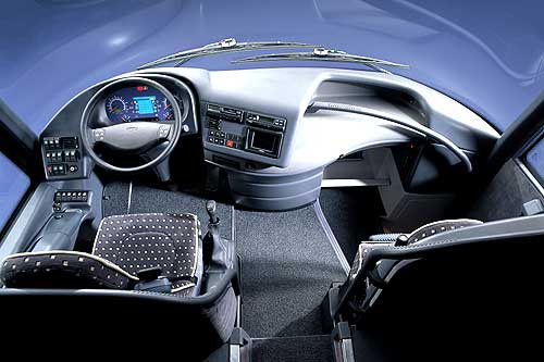 整体式行李架,人性化设计的隔栏,居室化的内部装饰,使人如居家室。电动隐藏式前遮阳帘,使前部处理更加简洁。