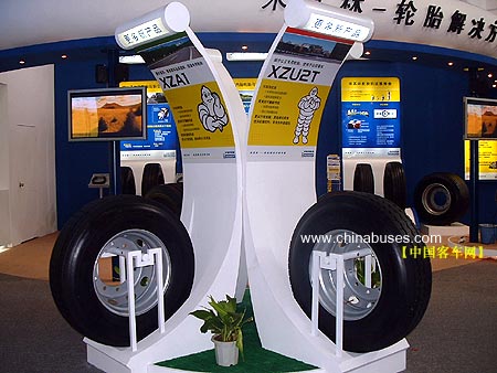 以制造飞机轮胎而著称的佳通轮胎,在展览会上带来了自己多系列产品。佳通轮胎在飞机制造、轿车行业占有率很高的同时,现在也开始向客车轮胎行业进军,并已经小有收获。