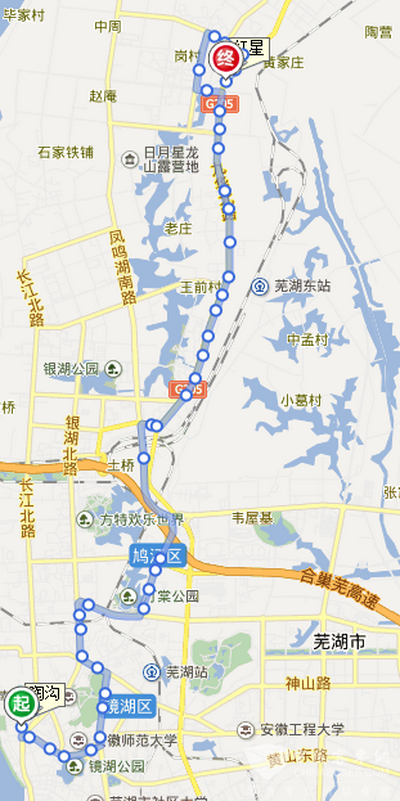 以陶沟到红星6路线路为例,路线如图1,该线路的平均车速约为30km/h,最高车速约为60km/h,共有39个站点,2个上下坡,因其线路从市中心开至市郊,客流量较大,且中途下客较少,负重相对较高; 图16路线路图