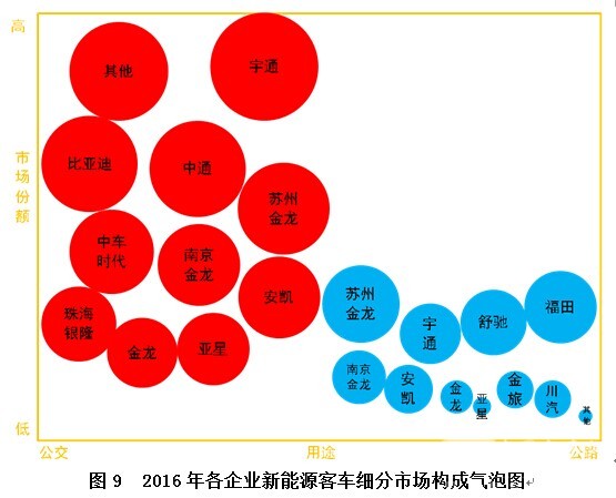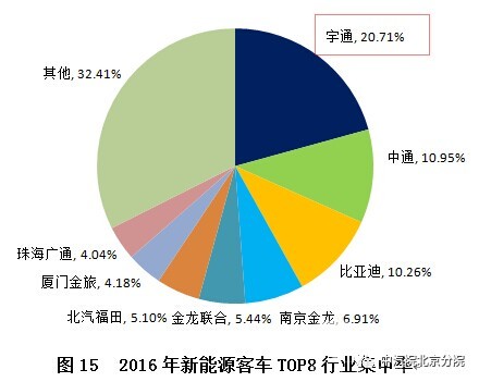 从企业销售数据来看,宇通、中通、比亚迪等企业均围绕新能源公交产品布局,竞争较为激烈,新能源公交正成长为红海市场。至2016年底,我国公交客车的保有量达50万辆左右,其中,新能源公交约16万辆,市场渗透率达32%。