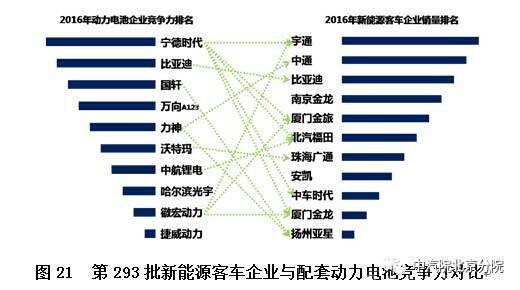 从图21可以看出,以宁德时代为代表的优秀动力电池企业和以宇通、厦门金旅、北汽福田等客车企业为代表的整车企业形成了强强联合的配套关系,这对提升双方市场竞争力起到了重要推动作用。
